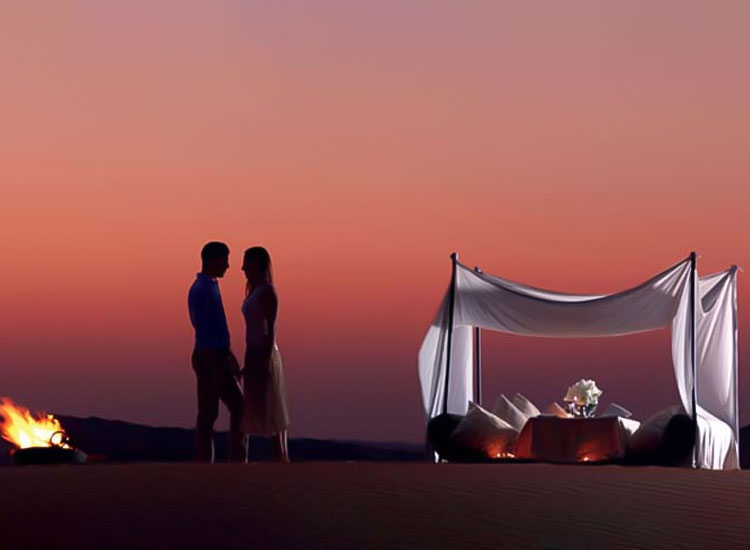 Spend a wonderful romantic evening in Abu Dhabi with exclusive sunbathing until the night dawns to engulf you in your own private romantic dinner in Abu Dhabi. Spend an unforgettable evening with your better half enjoying the desert breeze. Sit by the bonfire under the night sky with an uncountable number of stars twinkling on your day.