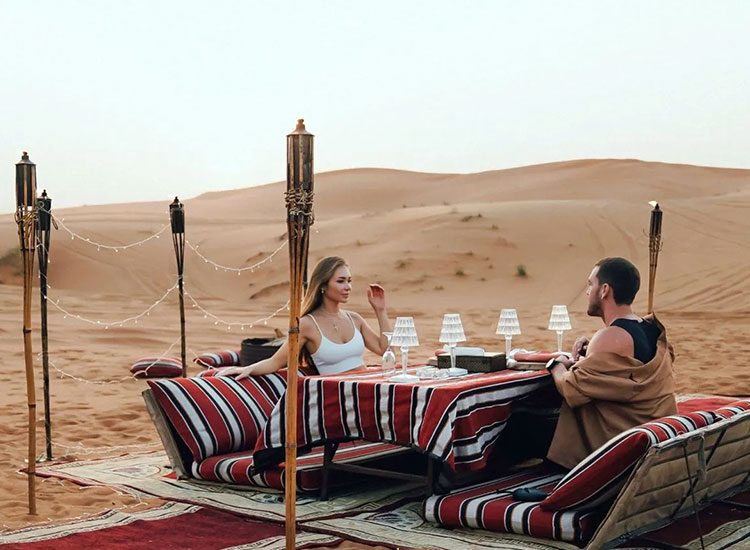 Flowers, chocolate are super-impressive, but it is just the same old romantic escape even a five-year-old would plan. Make your romantic escape not just memorable rather an unforgettable one with our romantic dune dinner in Abu Dhabi. Blend with the unique landscapes of the mother nature with your soul mate by your side under a candlelight dinner.