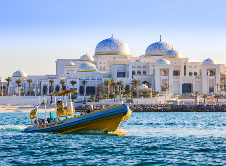 60-minute Abu Dhabi rib sightseeing boat cruise starts off at the elegant Emirates Palace that stands with its royal grandeur. The high-esteemed Islamic architectural elements of the palace and the colours reflecting the shades of sand found in the Arabian deserts will keep you captivated until you meet the corniche lined with trees.